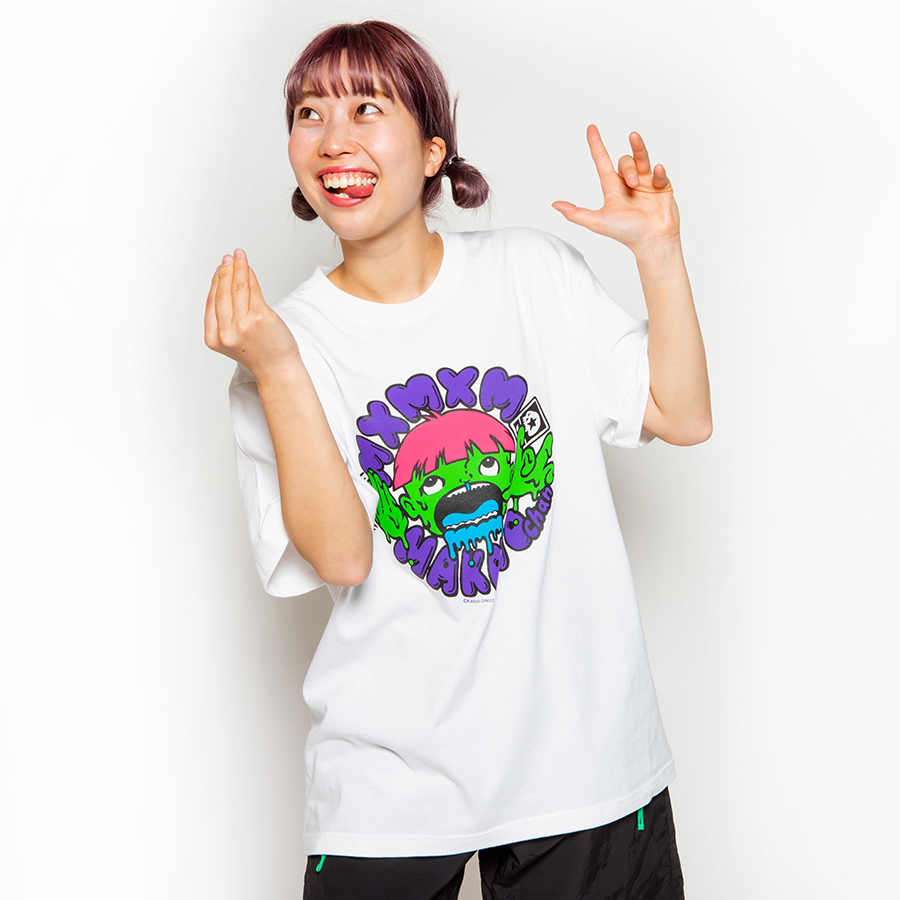 楳図かずおの漫画『まことちゃん』コラボ第2弾。主人公のまことちゃんとMxMxMロゴをフィーチャー。まことちゃん × まじかる “どろどろまことちゃん” Tee ¥4,950