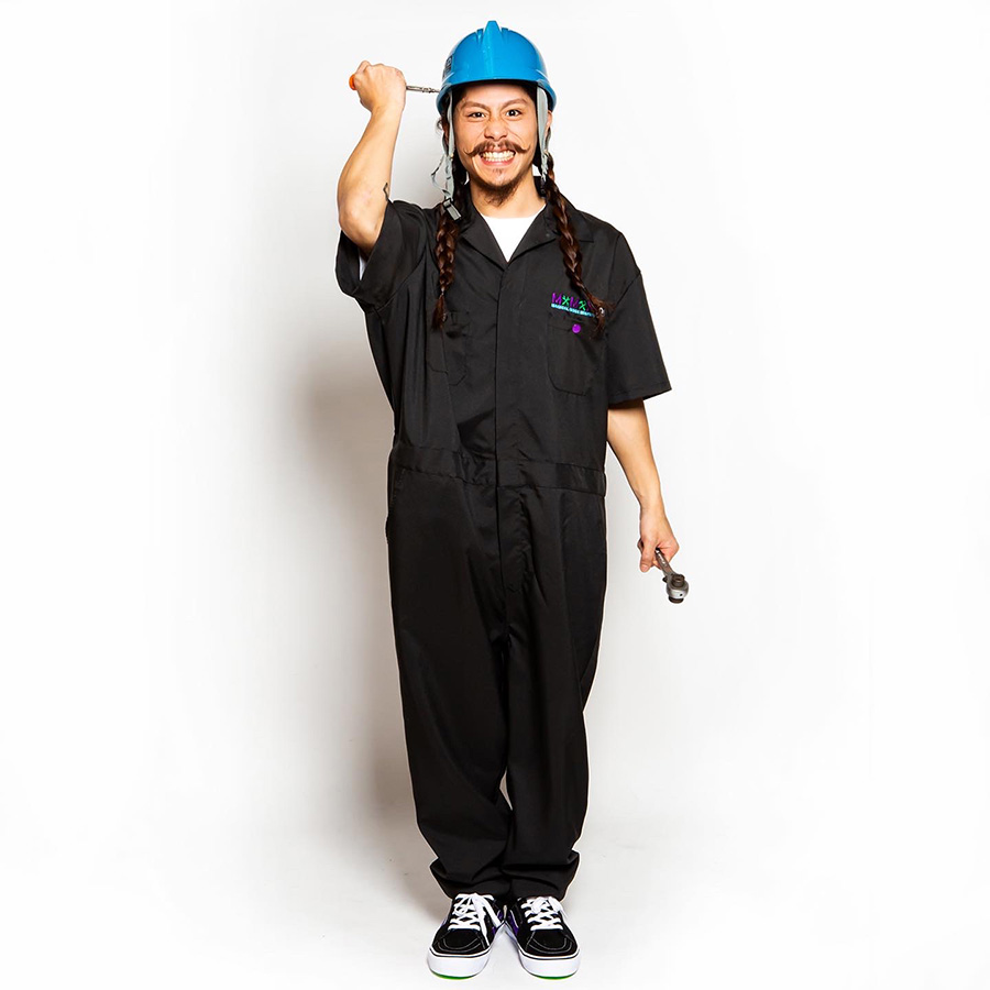 私服はもちろん、作業着、 日曜大工、自動車工場、カスタムビルダー、バンド、ダンスなどなど、さまざまなシーンで活躍するオールインワン。マジカルツナギミスフィッツ ¥19,800