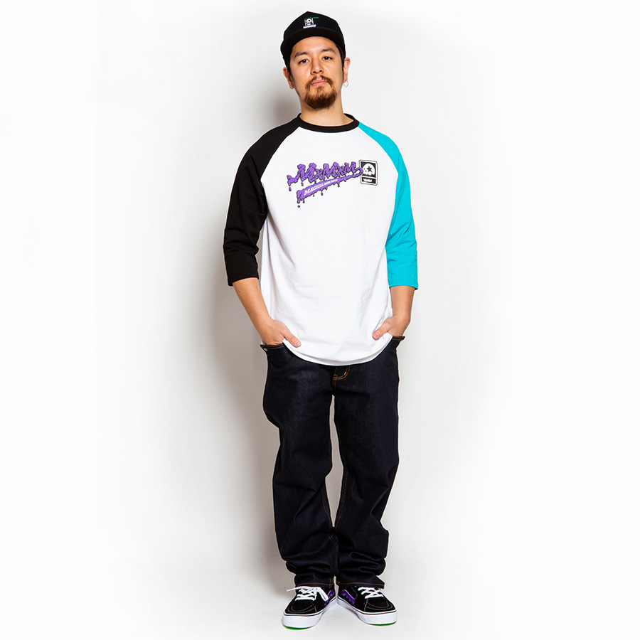 クレイジーカラーを採用したBBラグラン。フロントにはドロドロのロゴをプリント。MxMxM BB Raglan ¥8,250