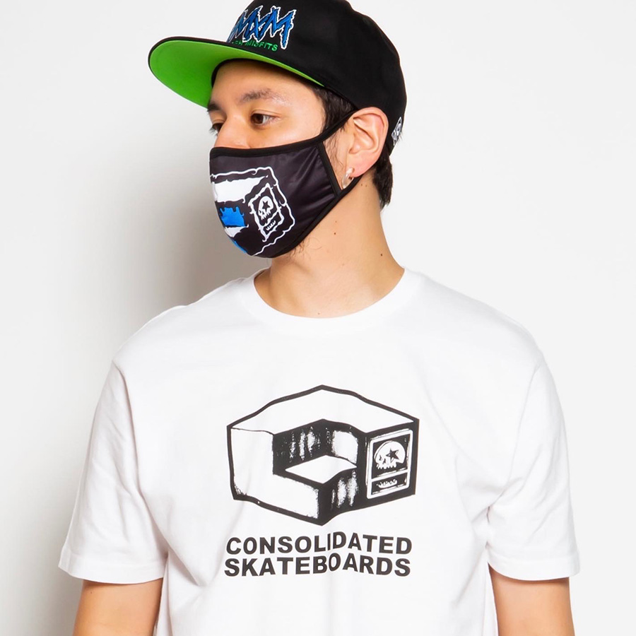 Consolidated SkateboardsとのコラボはTとマスクがセット。Teeは2種類のデザインで計4色展開。Consolidated × MxMxM "MMMCube Mask” Set ¥5,500