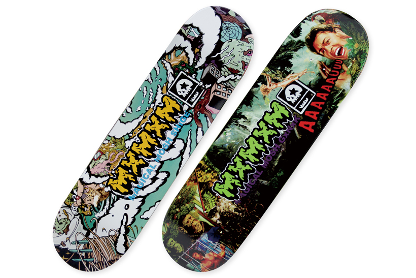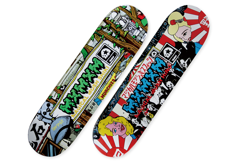 MxMxM Skateboardsより、Shiki、Hino、Shige、GxNxKのシグネチャーデッキと、スポンジボブとのコラボデッキが登場。