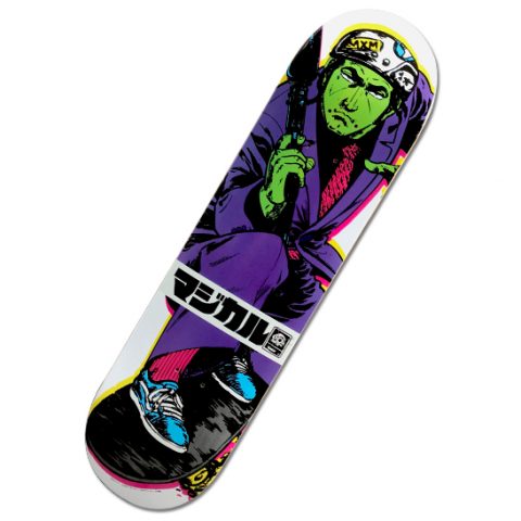 ドロドロのロゴを用いたチームモデルやクルーザー、キッズボードのなかで異彩を放つのは日本最長寿漫画として知られる『ゴルゴ13』との限定50本のコラボデッキ。