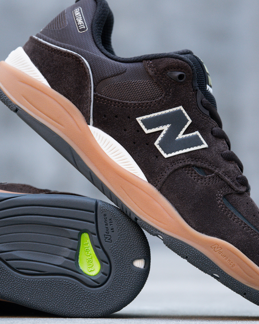 FuelCellミッドソールとFantomFit構造で高反発のクッション性と優れたフィット感を実現。さらに新設計のソールパターンと耐久性素材Nduranceが激しいスケートにも対応。スエードアッパーに最先端テクノロジーを詰め込んだティアゴ・レモスのシグネチャーモデル。NM1010BN ¥15,950