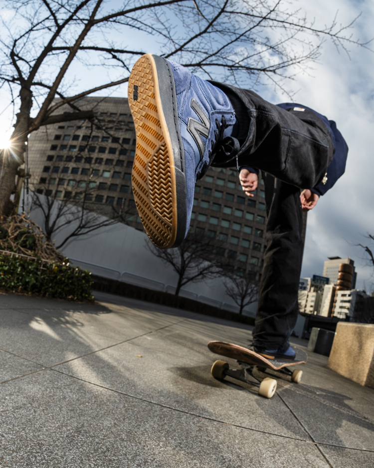 通気性に優れたメッシュサドルと二重構造による耐久性の高いアッパーに加え、ミッドソールには優れた衝撃吸収性を発揮するABZORBを搭載。インソールには快適性の高いOrtholite®を採用。ヴァルカナイズドのようなボードフィールを保ちながら軽量性とクッション性を高いレベルで両立。さらに耐摩耗素材Nduranceを適所に配置し耐久性を強化。サドルに配置されたNロゴとヒールカップにはリフレクターを備え夜間の視認性にも配慮。先日パートをドロップしたばかりのロニー・ケスナーも愛用。UN440HNN ¥13,970
