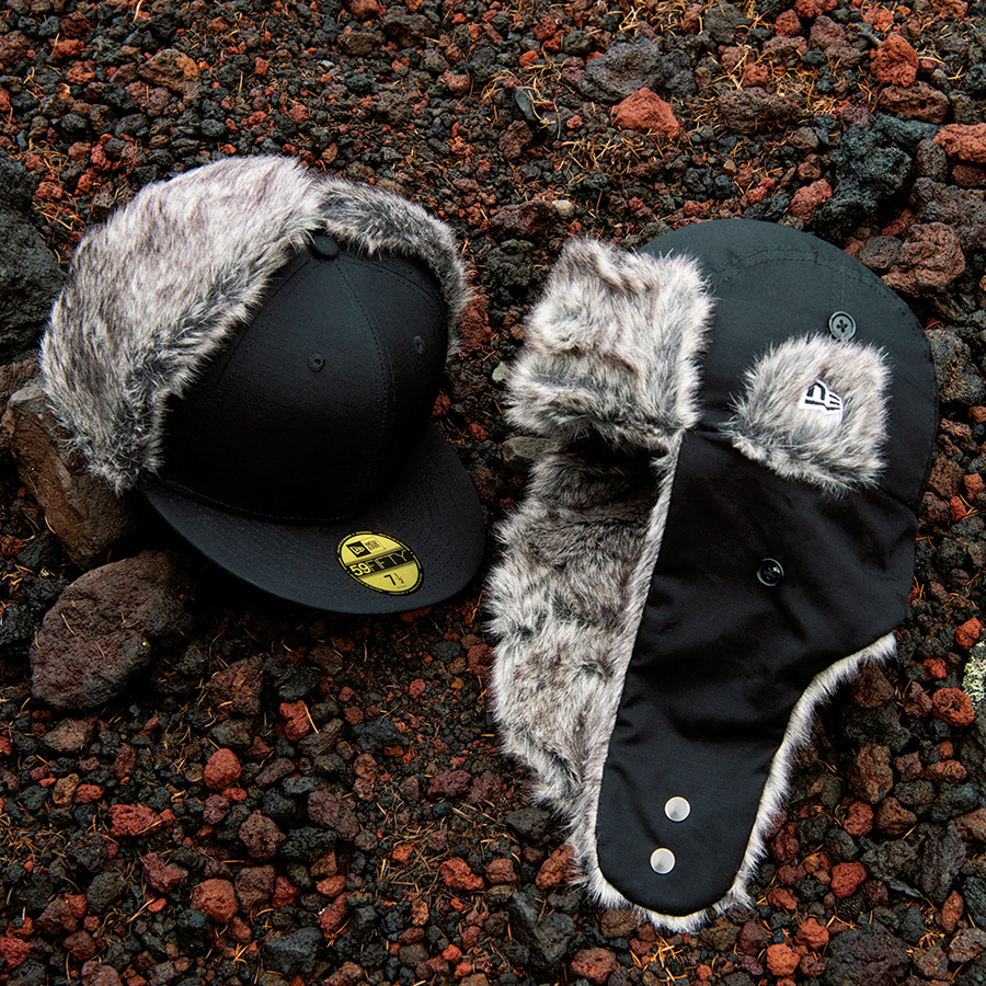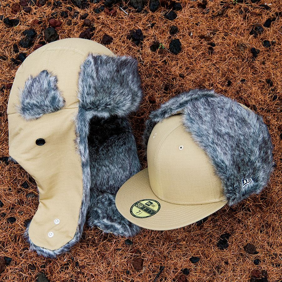 イヤーフラップに毛足の長いシンセティックファーを採用。
