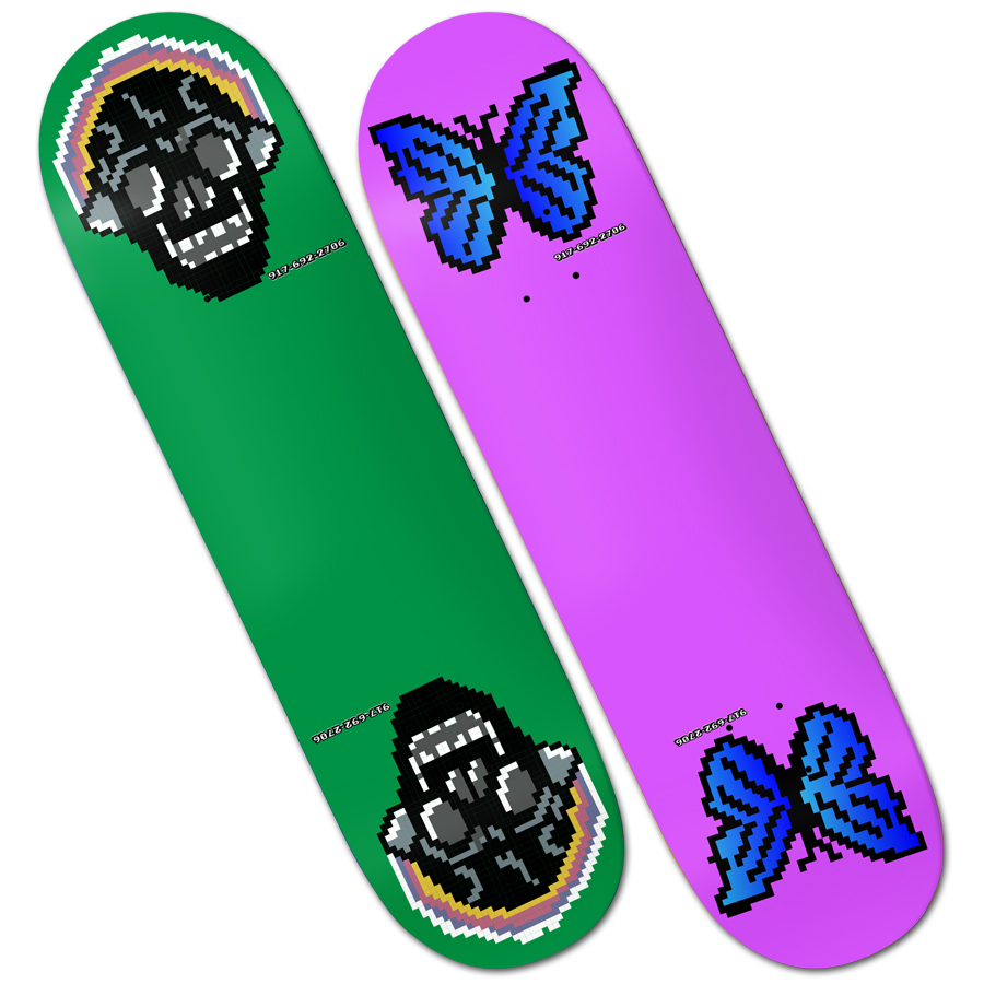 写真左から、Green Skull(8.0インチ)、Purple Butterfly(8.18インチ)。ともに¥13,750