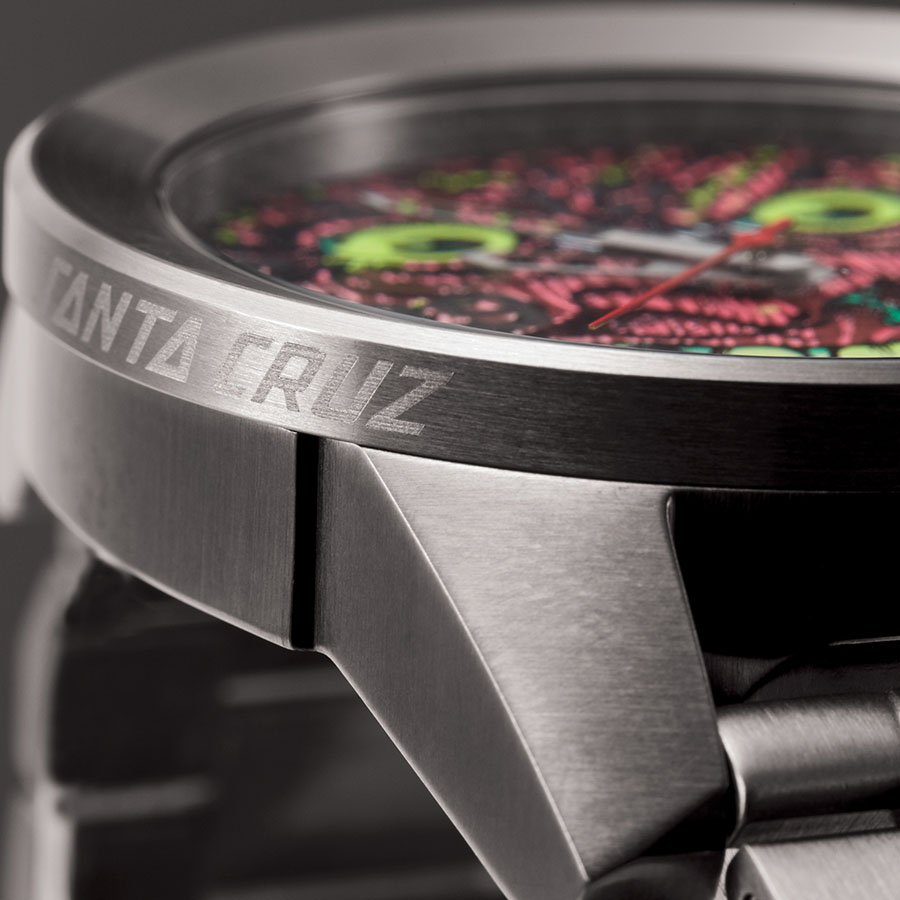 ジム・フィリップスが手掛けたロブ・ロスコップやスクリーミングハンドといった、SCを象徴するアートワークを文字盤や秒針に採用。