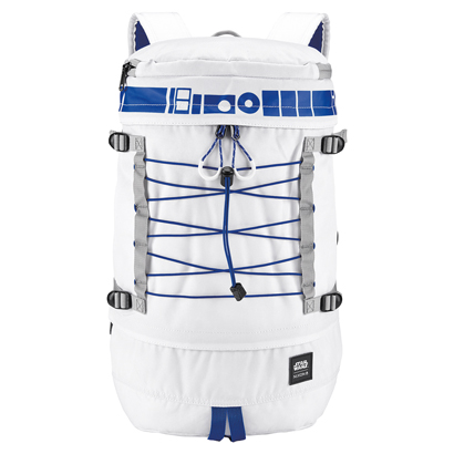 写真左から、THE SMALL TIME TELLERのR2D2 BLUEカラー¥24,840、DRUM BACKPACKのR2D2 WHITEカラー¥18,144
