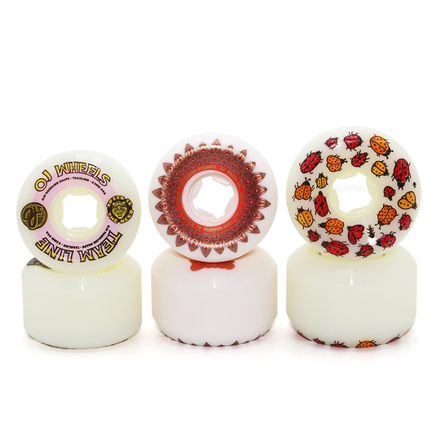 写真左から、Team Line(53mm 99A)、Elite Gardner(56mm 101A)ともに¥7,040、Pro Boserio Ladybugs(60mm 99A)¥6,600