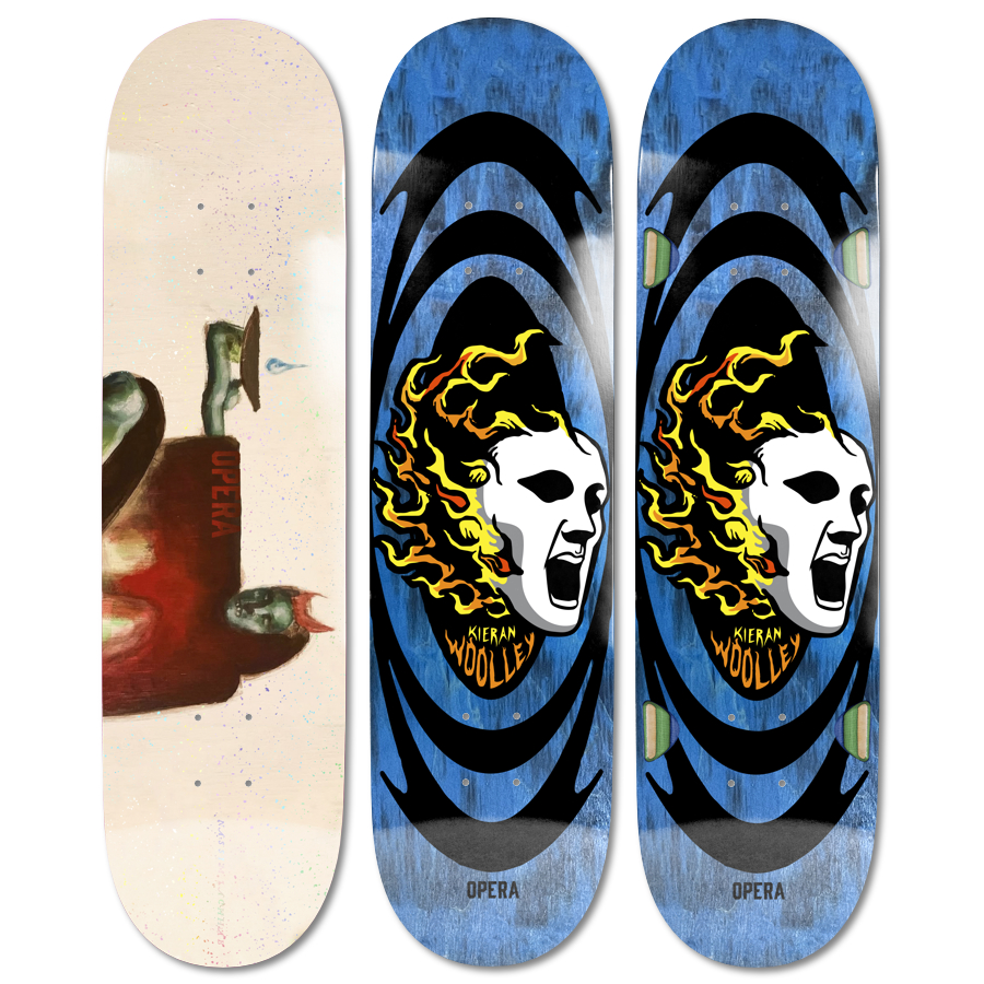 写真左から、Nassim Lachhab Nassim Gift EX7(7.75 × 31.1)、Kieran Woolley Screaming Mask EX7(8 × 31.6 / 8.5 × 31.95)。すべて¥12,650