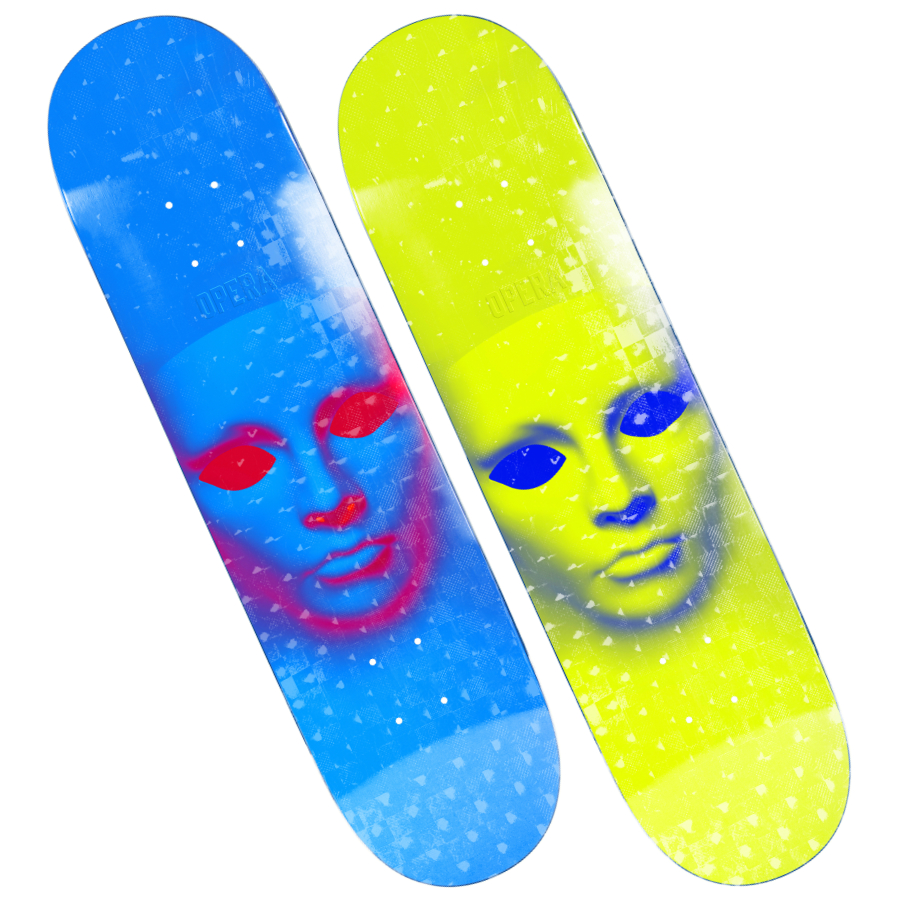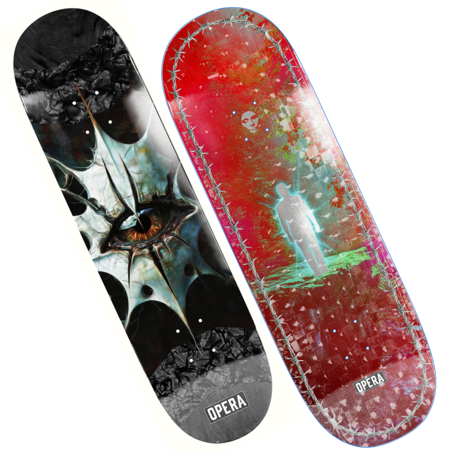 写真左から、Evil Eye Symmetrical EX7 Pop Slick(8.25 × 31.8)、Radiate EX7(10 × 31.85)。ともに¥14,300