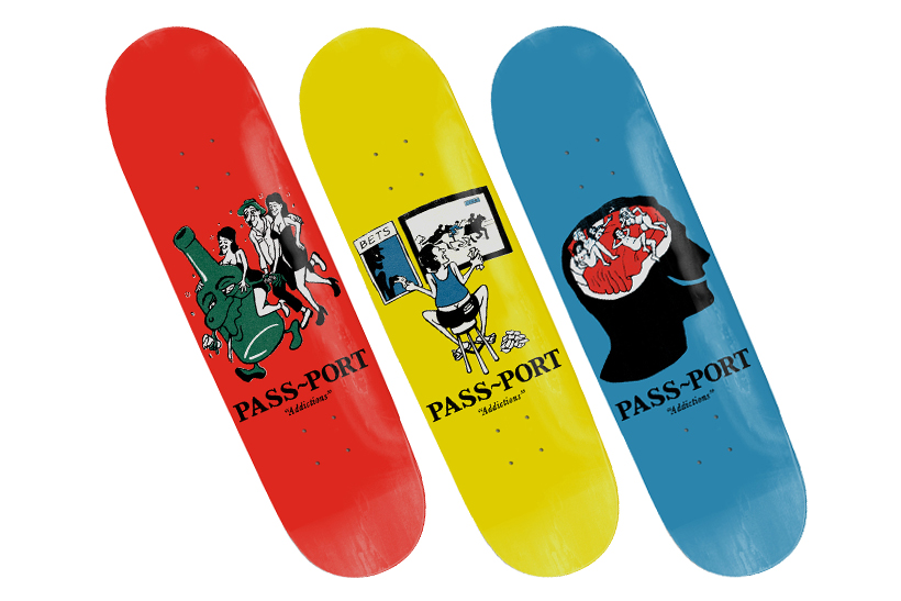 オセアニア発のデッキブランドとして急成長中のPass~Portの最新AddictionsシリーズのデッキとTシャツが完売間近。