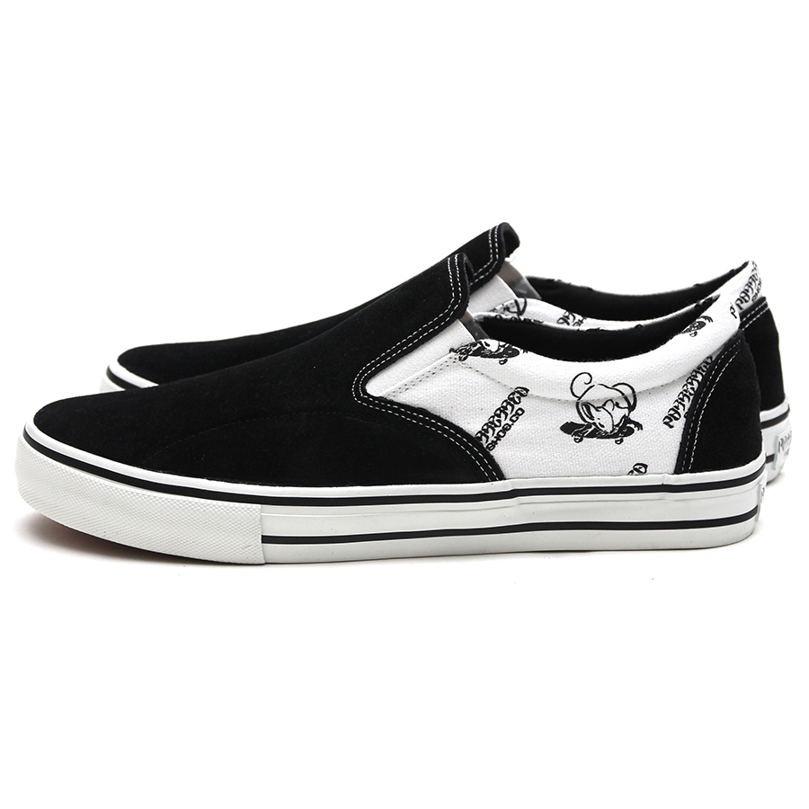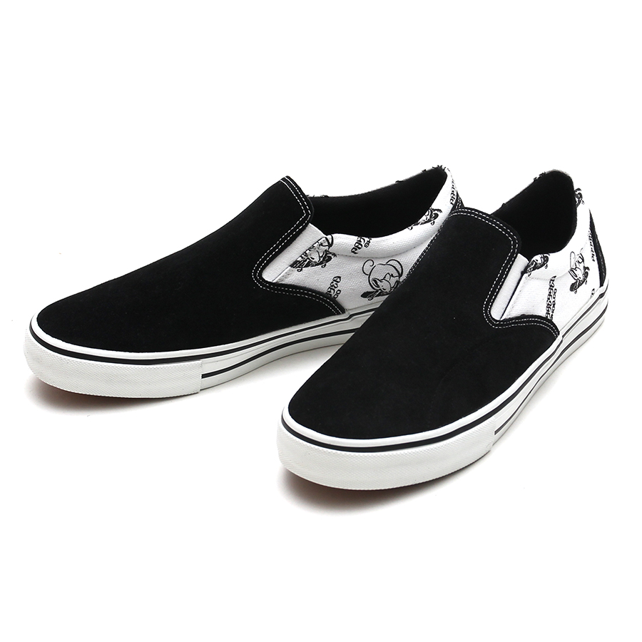スエード&キャンバスのコンビアッパーのスリッポン。キャンバス部分には総柄のデザインを採用。¥11,880