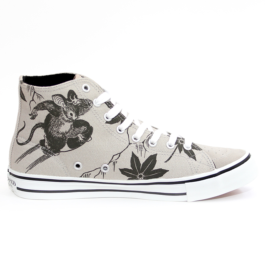 左右それぞれの内側に躍動感のあるネズミのグラフィックをプリント。