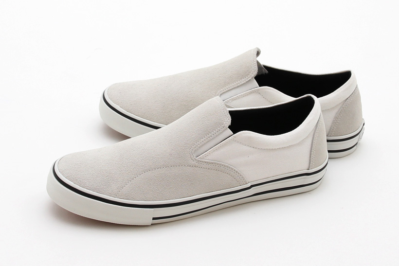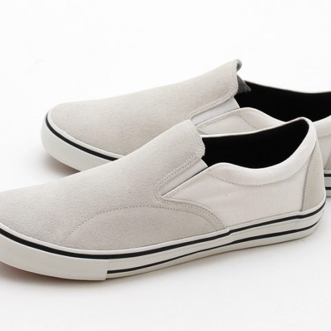 スエード×キャンバスのアッパーをオールホワイトで統一。摩耗しやすいシューズ側面を二重にすることで耐久力をアップ。¥11,880