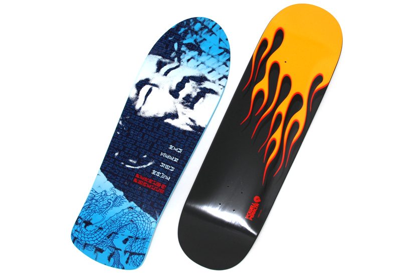 写真左から、Animal Chin 30th Anniversary(10×30)¥14,040、Hot Rod Flames(9.375×33.875)¥12,960