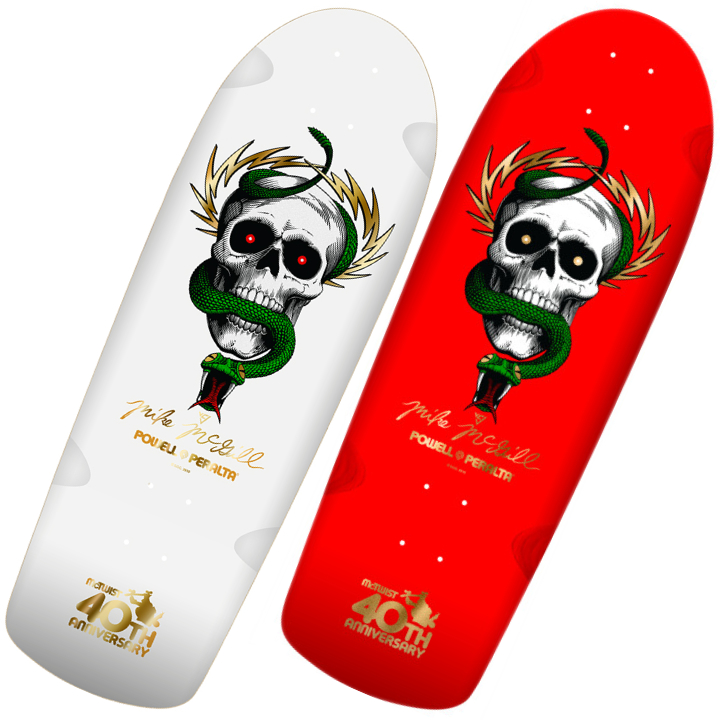 写真左から、McGill Skull & Snake McTwist White(10 × 30.125)、McGill Skull & Snake McTwist Red/Gold(10 × 30.125)ともに¥19,800