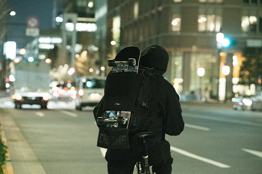 3ラップキャリーシステムによるデッキの収納、ロールトップクロージャーと熱圧着縫製による完全防水など、CHROMEならではの機能性が◎。小ぶりのPrimeタグもさり気ないアクセント。BARRAGE SKATE PACK ¥27,500