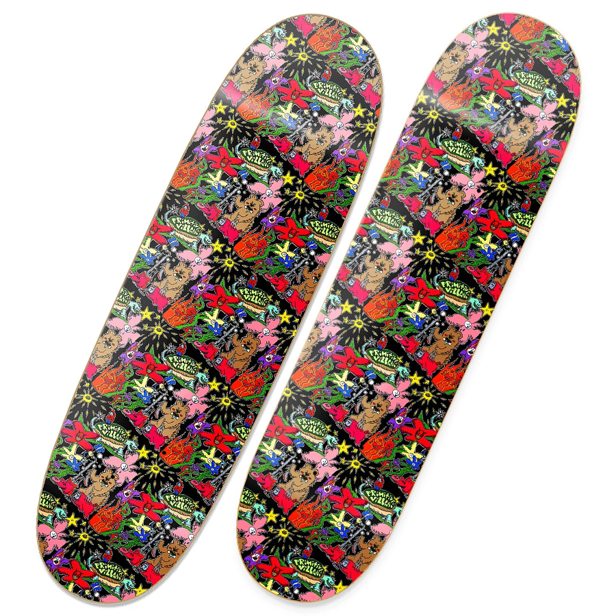 写真左から、Villani Sketchy Deck Green(9.125インチ)、Villani Sketchy Deck Blue(8.5インチ)。ともに¥12,100