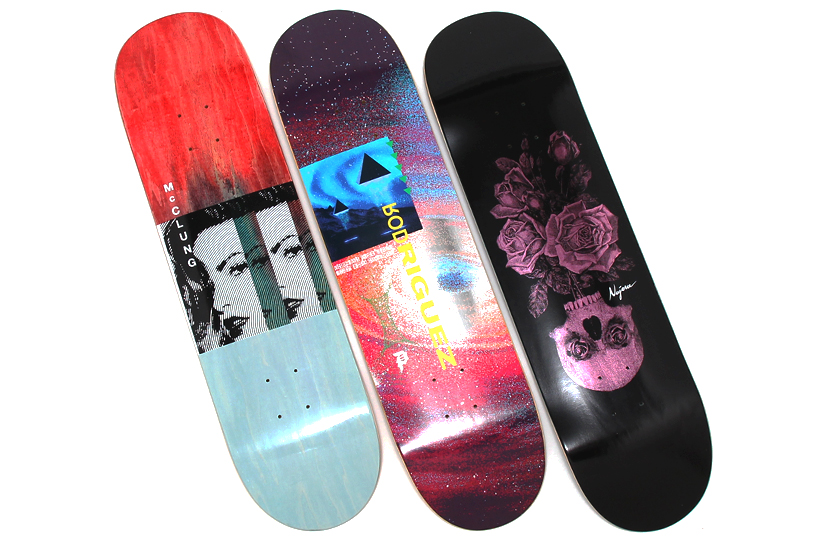 写真左から、トレント・マクラング(8.125×31.5)、ポール・ロドリゲス(8×31.75)、ディエゴ・ナヘラ(8.25×31.75)。すべて¥11,880