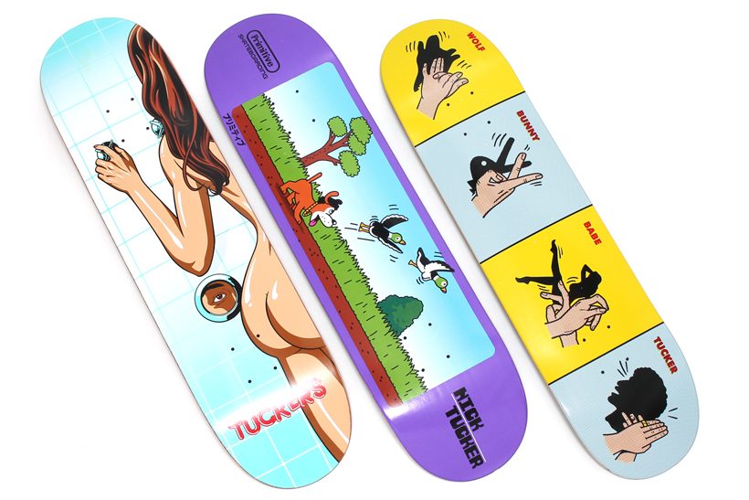 ニック・タッカーモデル。写真左から、Tucker's(8×32)、Hunter(8.125×32)、Shadow Puppets(7.75×31.75)。すべて¥13,500