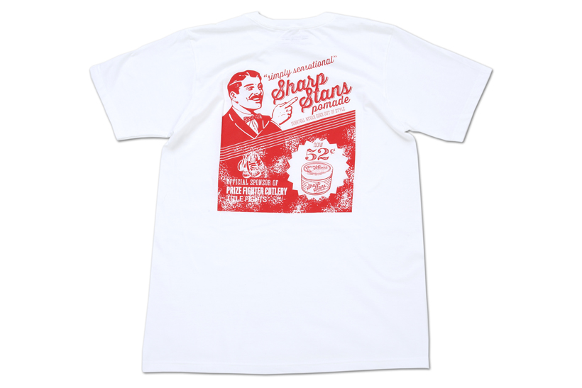 ヴィンテージテイスト溢れるグラフィックがバックに大きくプリントされたSharp Stan's Pomade Tee。¥4,536