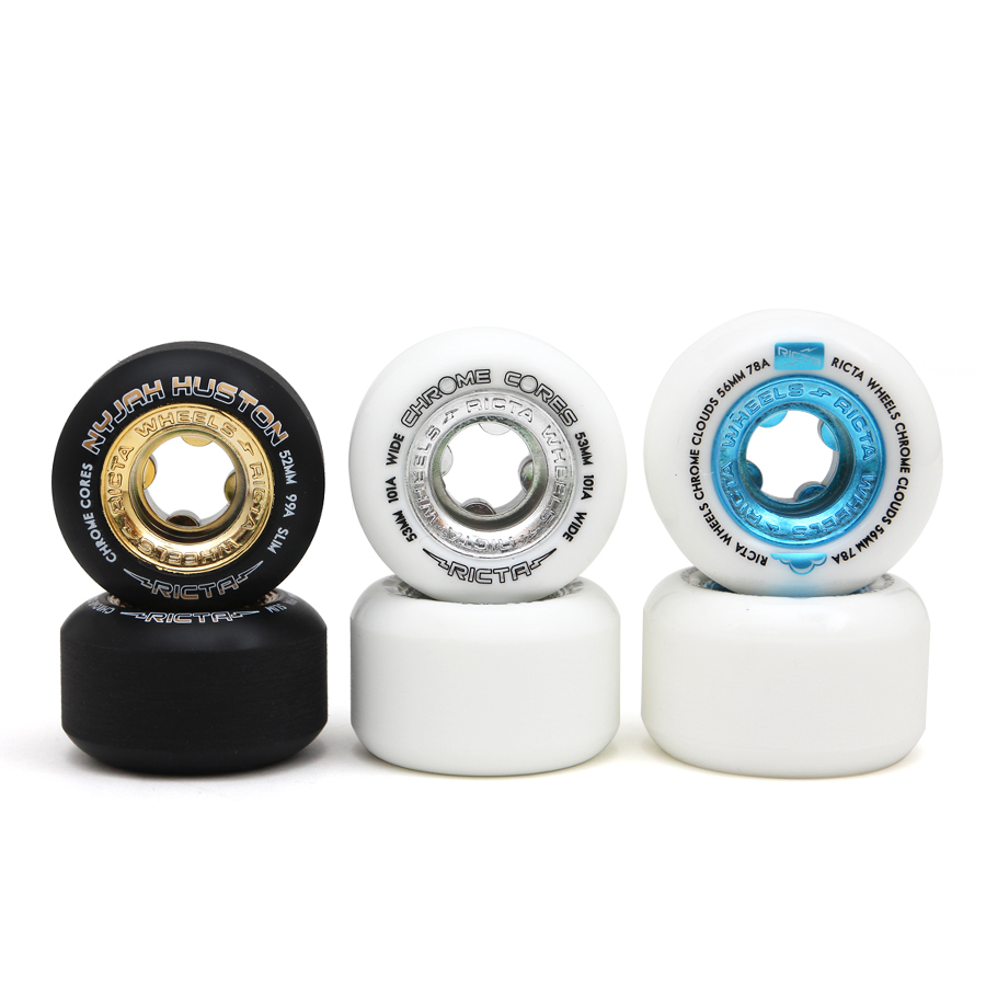 写真左から、Chrome CoreのNyjah(52mm 99a)、Silver(53mm 101a)ともに¥6,600、Chrome Clouds(56mm 78a)¥7,260