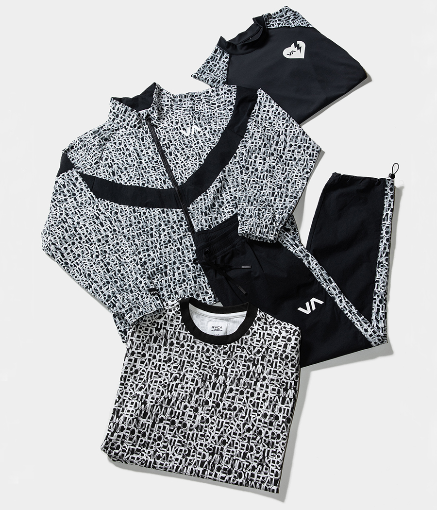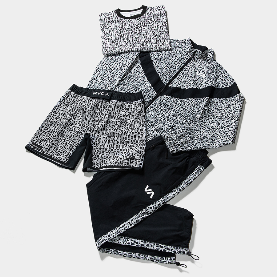 アーティストbaanaiによる作品が大胆に起用されたコレクション。アート、スポーツ、格闘技などをサポートするRVCAならではの他とは一線を画すラインナップ。