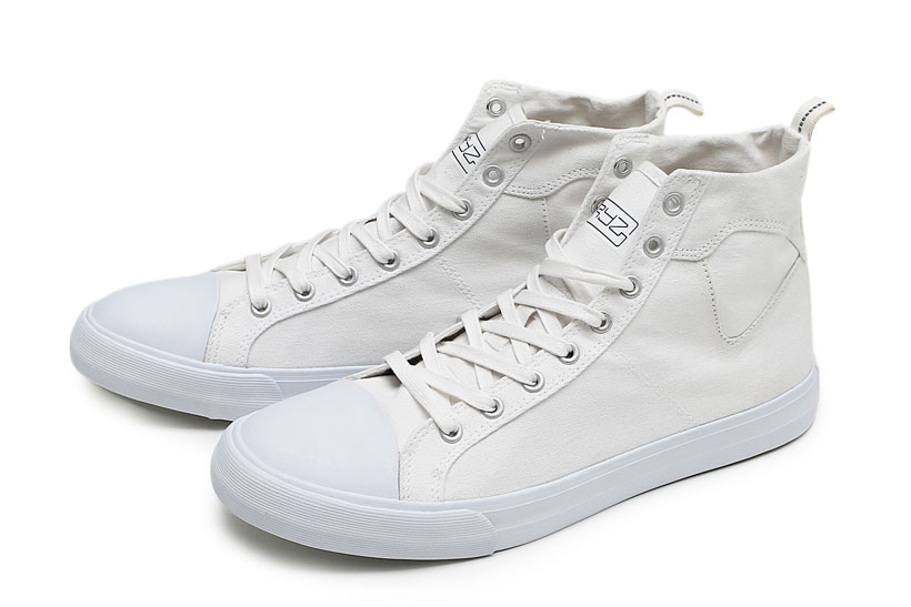 RYZのベーシックモデルであるキャンバス素材のアッパーを使用したAlder Hi Canvas。ホワイトで統一した清潔感溢れるアイテムは、くるぶし部分の切り替えがアクセントになっている。¥5,940