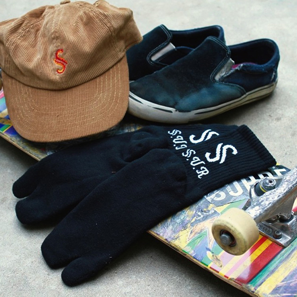 シューズの中で足のズレも少なく、繊細なボードコントロールにも一役買ってくれる日本製肉厚足袋ソックス。Ninja Socks 各色すべて¥1,980