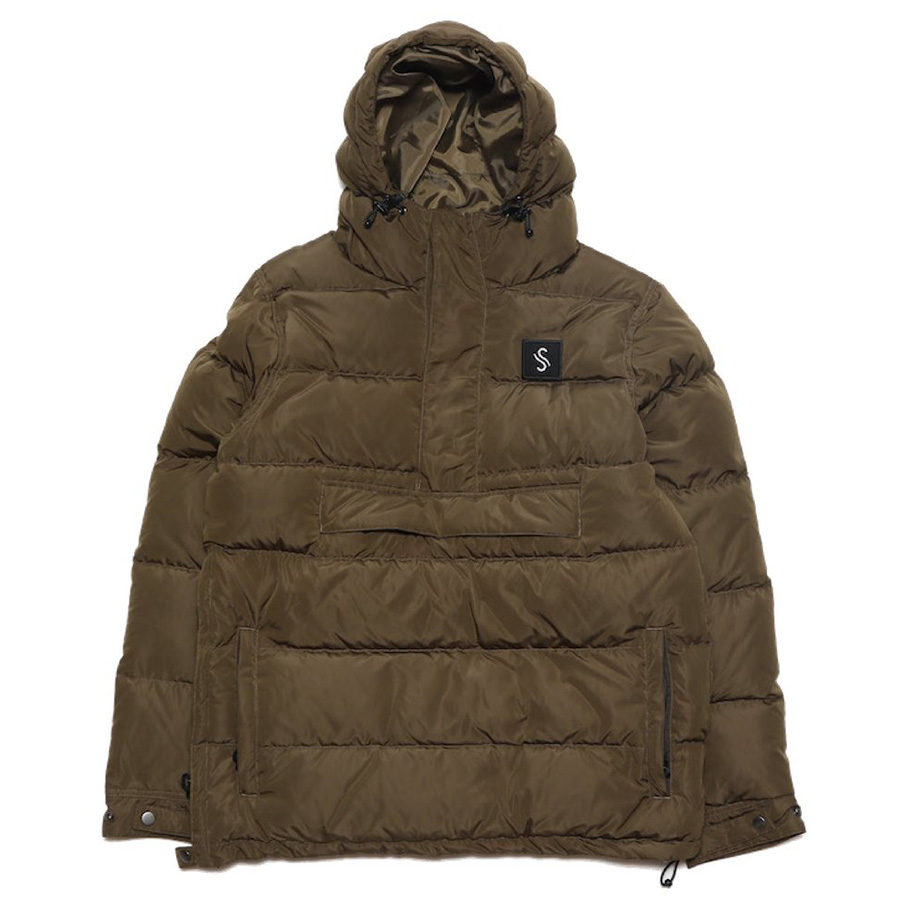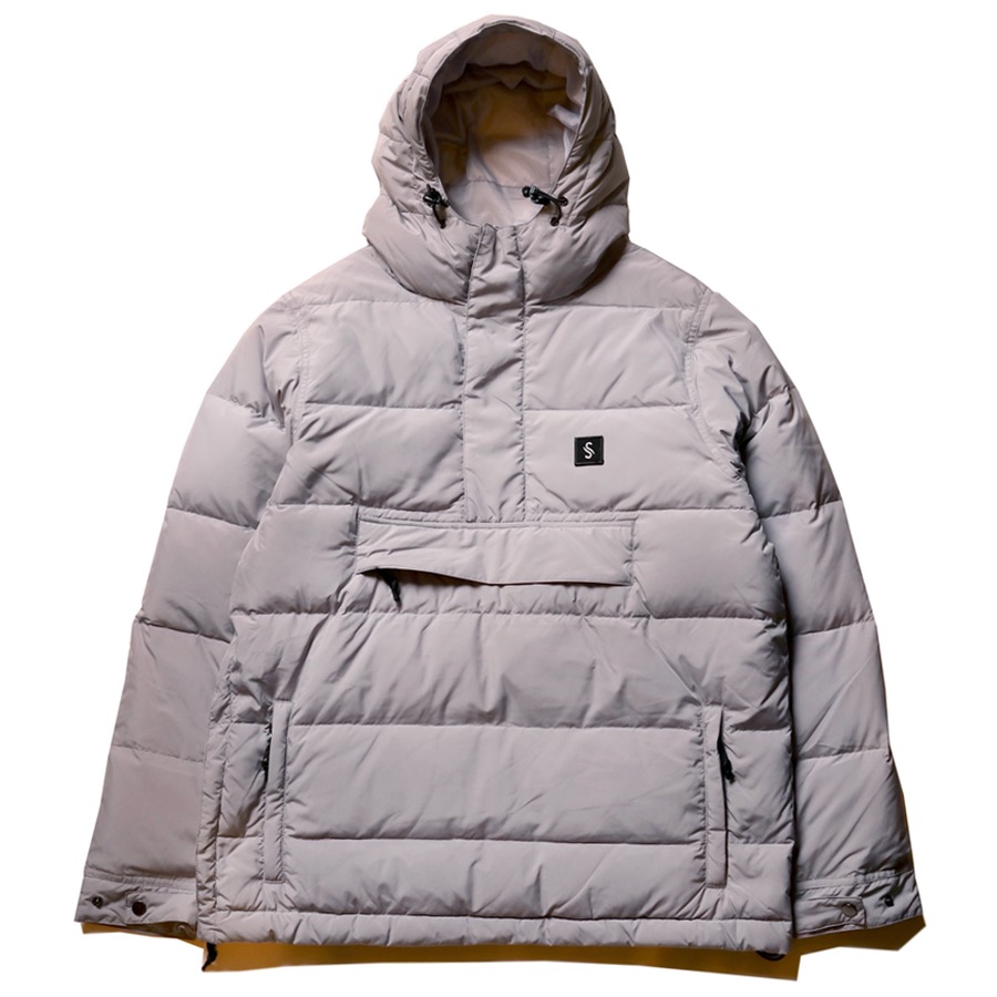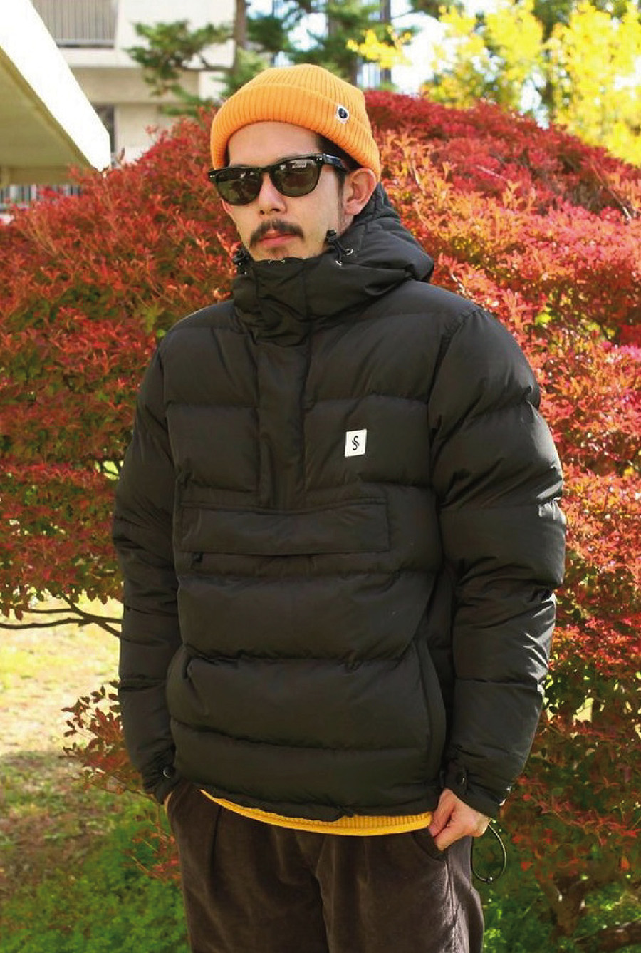 容易に脱衣可能なプルオーバータイプのダウンジャケット。ポケット内側は暖かなフリース仕様。ドローコードで防寒、細かなシルエットの調節も可能。羽毛の混合率はダウン60% フェザー40%。Anorak P/O Down Jacket ¥22,000