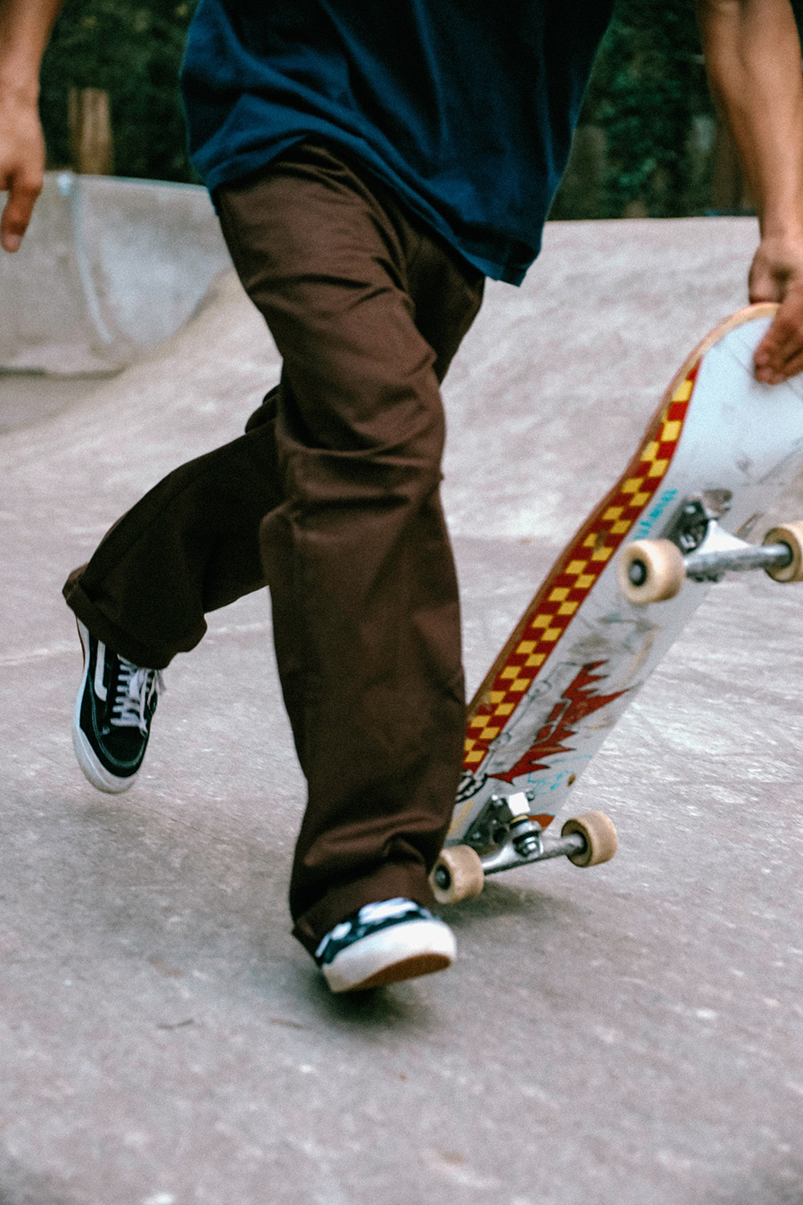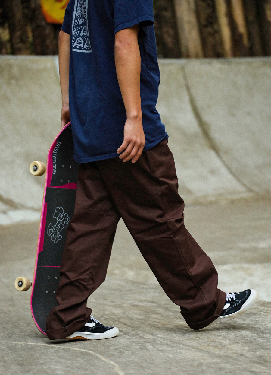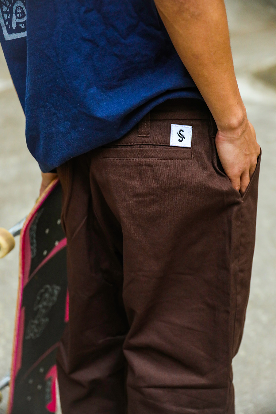 今期から初登場となるワイドワークパンツ。トレンドのワイドシルエット。コットン100%生地を使用したパンツは穿き始めから柔らかくも丈夫で強度も抜群。幅広にとられたバックセンターのベルトループは スケーターの激しいスラムにも耐えうる特化仕様。"Take Or Leave" Work Pants ¥9,900