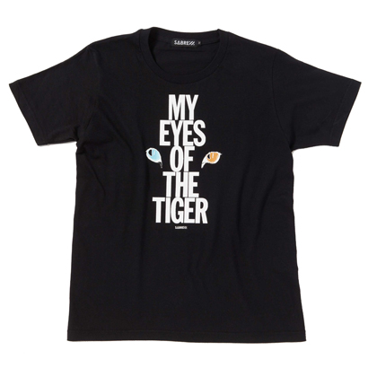 “鋭い眼光”という意味を示すEYE OF THE TIGERの文字が虎の目とともにプリントされた1枚。