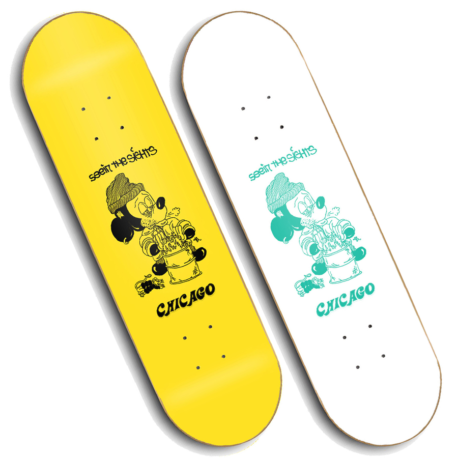 写真左から、Seein' the Sights: ChicagoのYellow(8.125インチ)、White Matte(8.5インチ)。ともに¥12,100