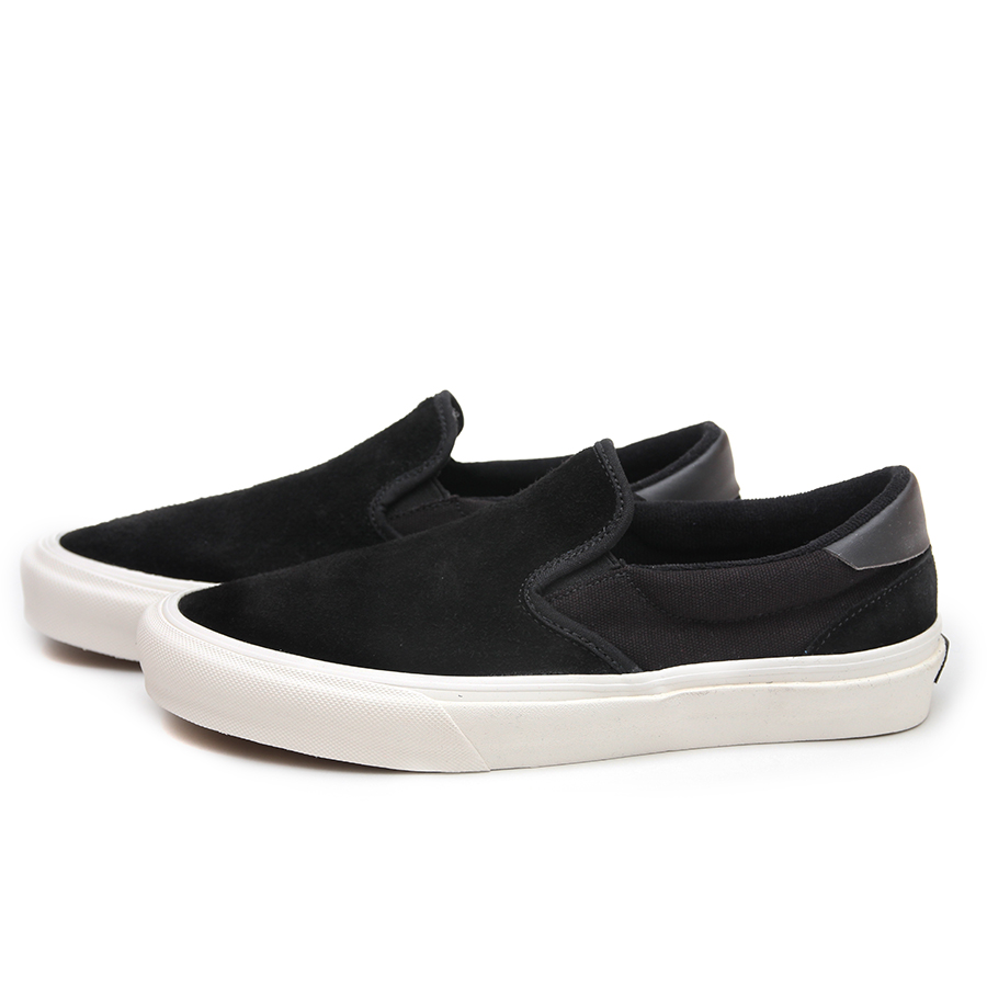 ブラックのスエード/キャンバスアッパーを用いたスリッポン。Ventura Black Cream Suede ¥6,380