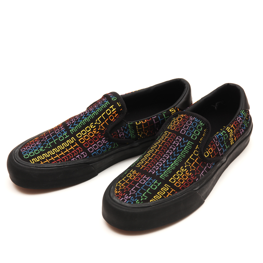 STRAYEやHOLLYWOODなどの文字をカラフルに織り込んだアッパーのスリッポン。Ventura Knit Rainbow ¥5,500