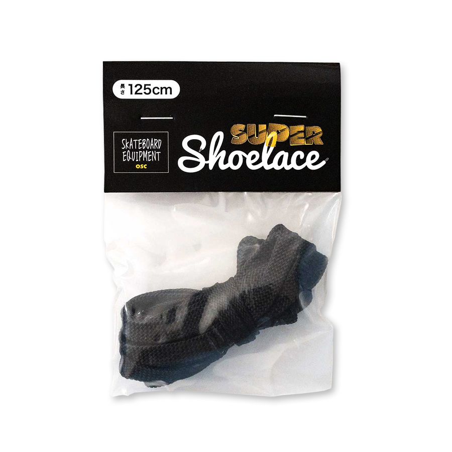 長さは125cm、カラーは白と黒の2色展開。Super Shoelace ¥440(幅12mm)、¥385(幅8mm)