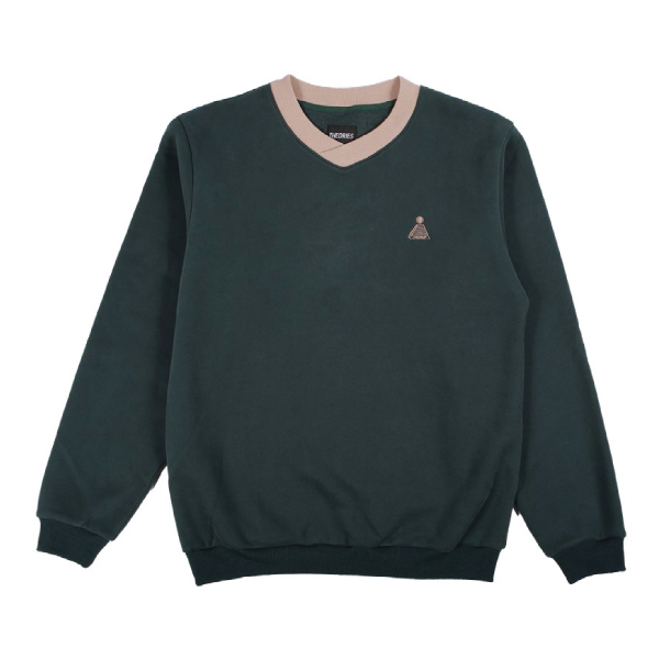 きめ細かく厚手の生地を使用したVネック仕様のスウェット。胸には定番のピラミッドの刺しゅうが入る。Blackout Sweat Shirts ともに¥13,200