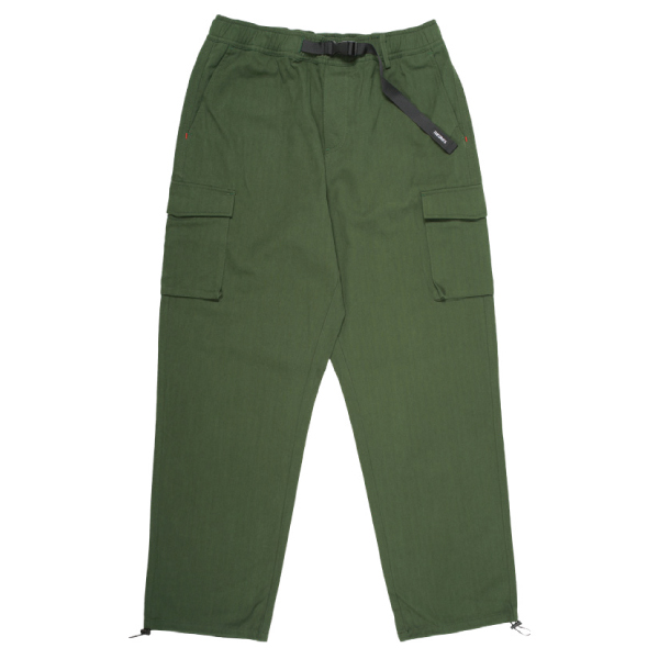 Theories初となるカーゴパンツ。今までのパンツの中でも一番太いシルエットで丈も長めの仕様。ウエストはイージーパンツタイプのバックル付き仕様で、広めの裾幅に重宝するドローコード入り。Trail Cargo Pants ¥15,400