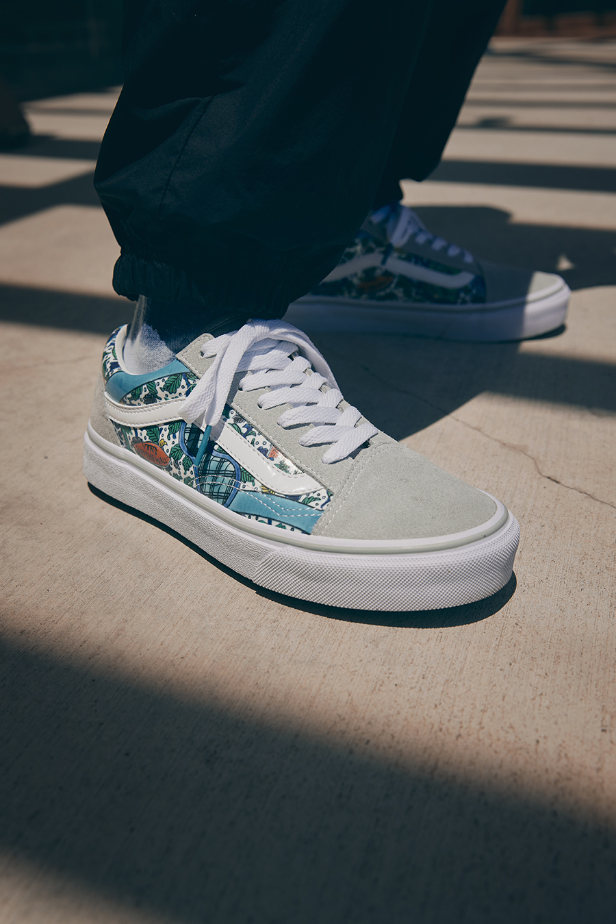 宮本雅夫モデル。写真上から、Old Skool(Whisper/Grn/Yel)¥12,100、Slip-On(Whisper/Bgd/Grn)¥11,000