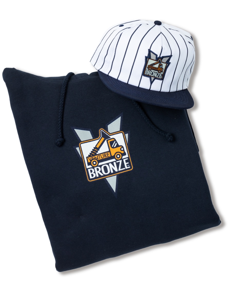 Bronze × Venture Team Edition Truck Polished / Bronze(5.6 / 5.8)¥4,730(※1個)、Bronze × Venture Pick Up L/S Hoodie ¥13,200、Bronze × Venture Awake S/S T-Shirt ¥5,500、Bronze × Venture Pick Up 5P Snapback ¥5,720、Bronze × Venture Awake MD Stocler ¥550