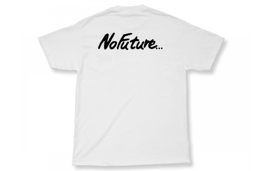 ホワイトとチャコールグレーの2色展開。バックにNo Future...というシニカルなコピーの配したポケットT。各色ともに¥4,536