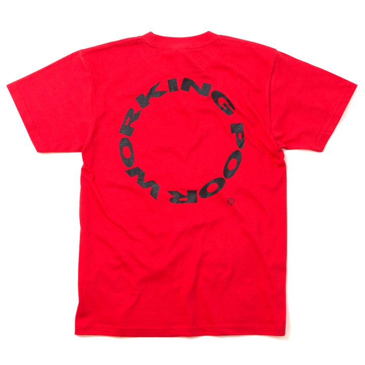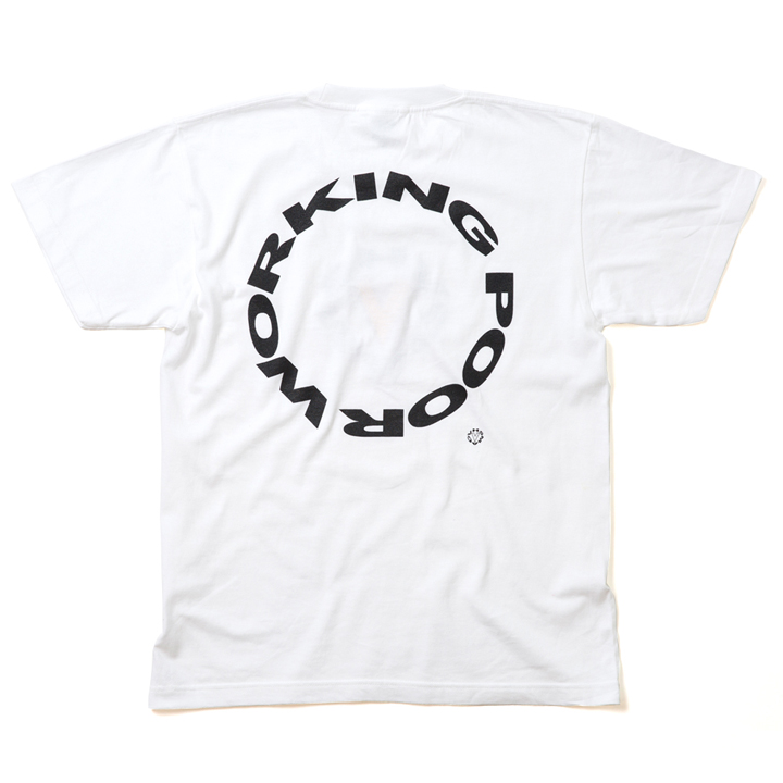 フロントにイエローのロゴ、バックにWORKING POORのサークルロゴをプリント。今日も元気に働こう! Working Poor Tee 各色すべて¥4,360