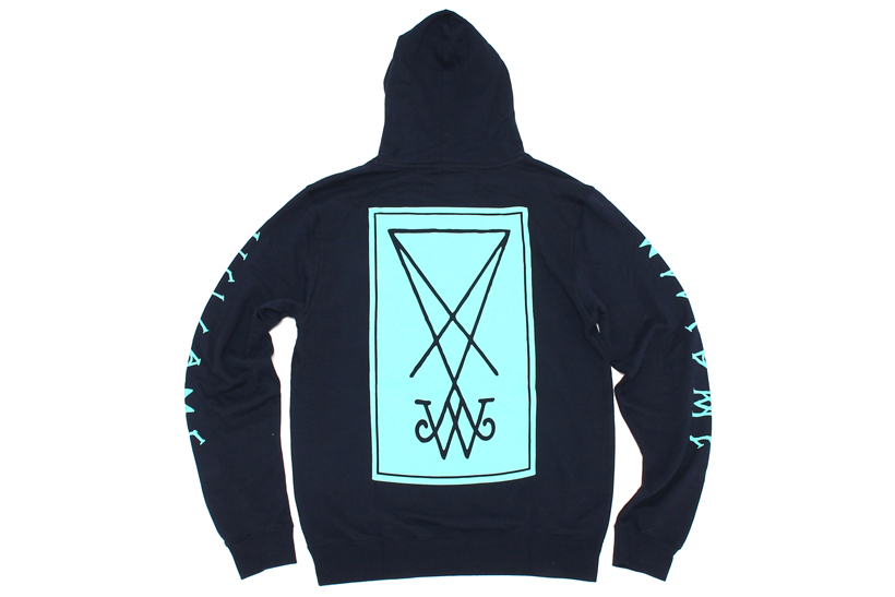 バックと両袖にプリントが施されたフーディ。ネイビー×エメラルドグリーンのカラーリングも◎。Symbol Lightweight Pullover ¥7,560