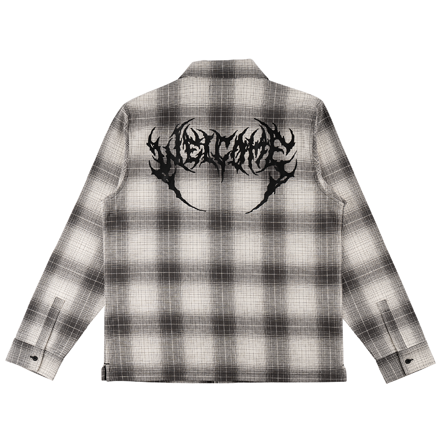 バックにロゴと配したチェックシャツ。Fang L/S Woven Plaid Shirt ¥14,300