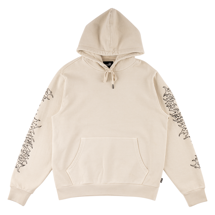 両腕の刺しゅうがアクセント。Barb Sleeve Embroidered Pigment-Dyed Hoodie ¥16,720