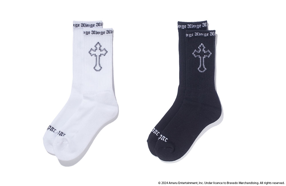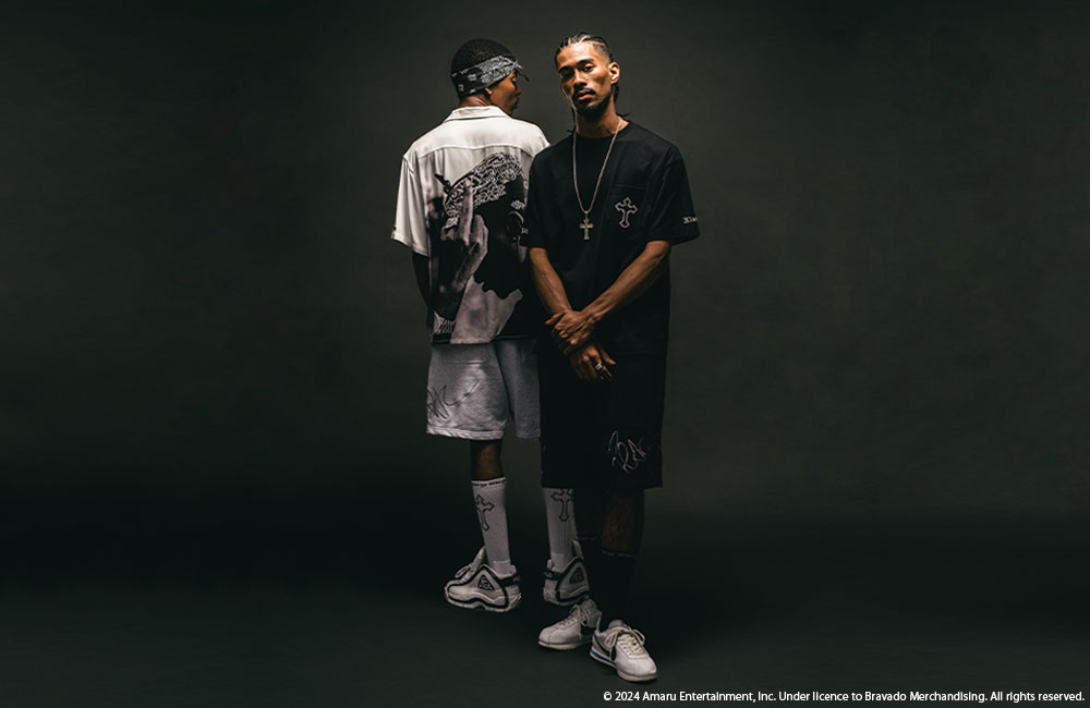 2Pacの象徴的な写真をはじめ、タギングやリリック、クロスなどをデザインに採用!