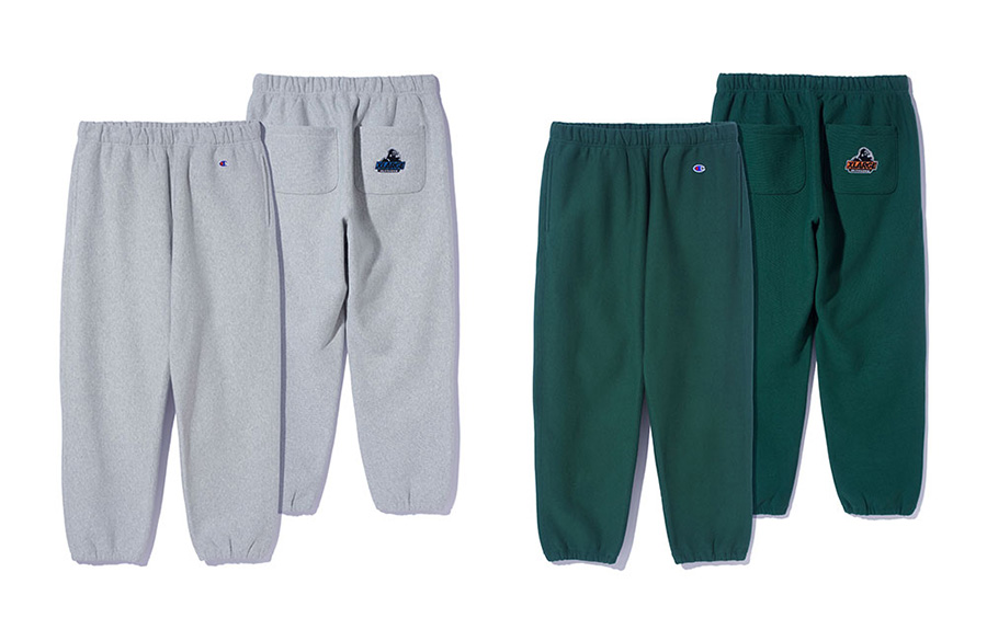 こちらもOLD OGゴリラロゴをバックポケットに刺しゅうで表現したスウェットパンツ。XLARGE×Champion REVERSE WEAVE SWEAT PANTS すべて¥14,300