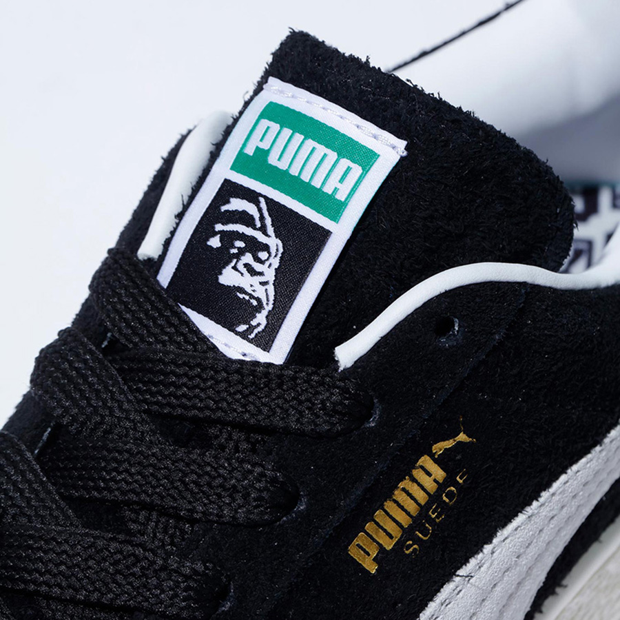 アッパーには毛足の長いスエードを採用。タン部分にはPUMAとXLARGEのOGゴリラを配置。
