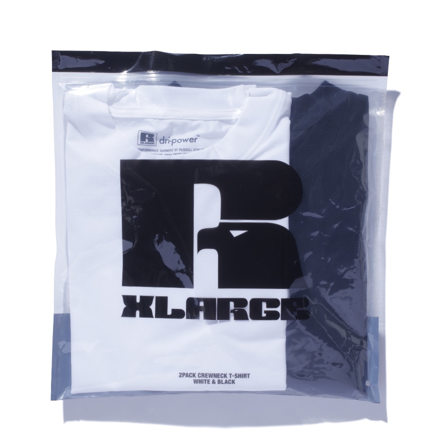 ブラックとホワイトのTシャツが2枚1セットでの販売。XLARGE × Russell Dry-Power 2-Pack Tee ¥8,800